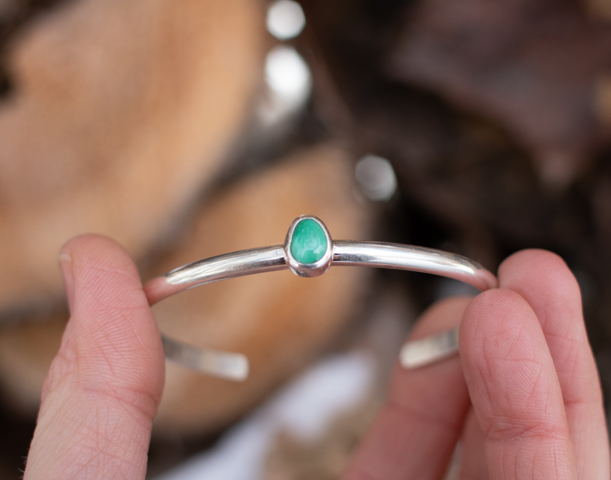Adorable little turquoise cuff, 0.35" by 0.28". on a size 5.5" sterling silver cuff. Pair with turq cuff # 1 to make adorable little sister cuffs.