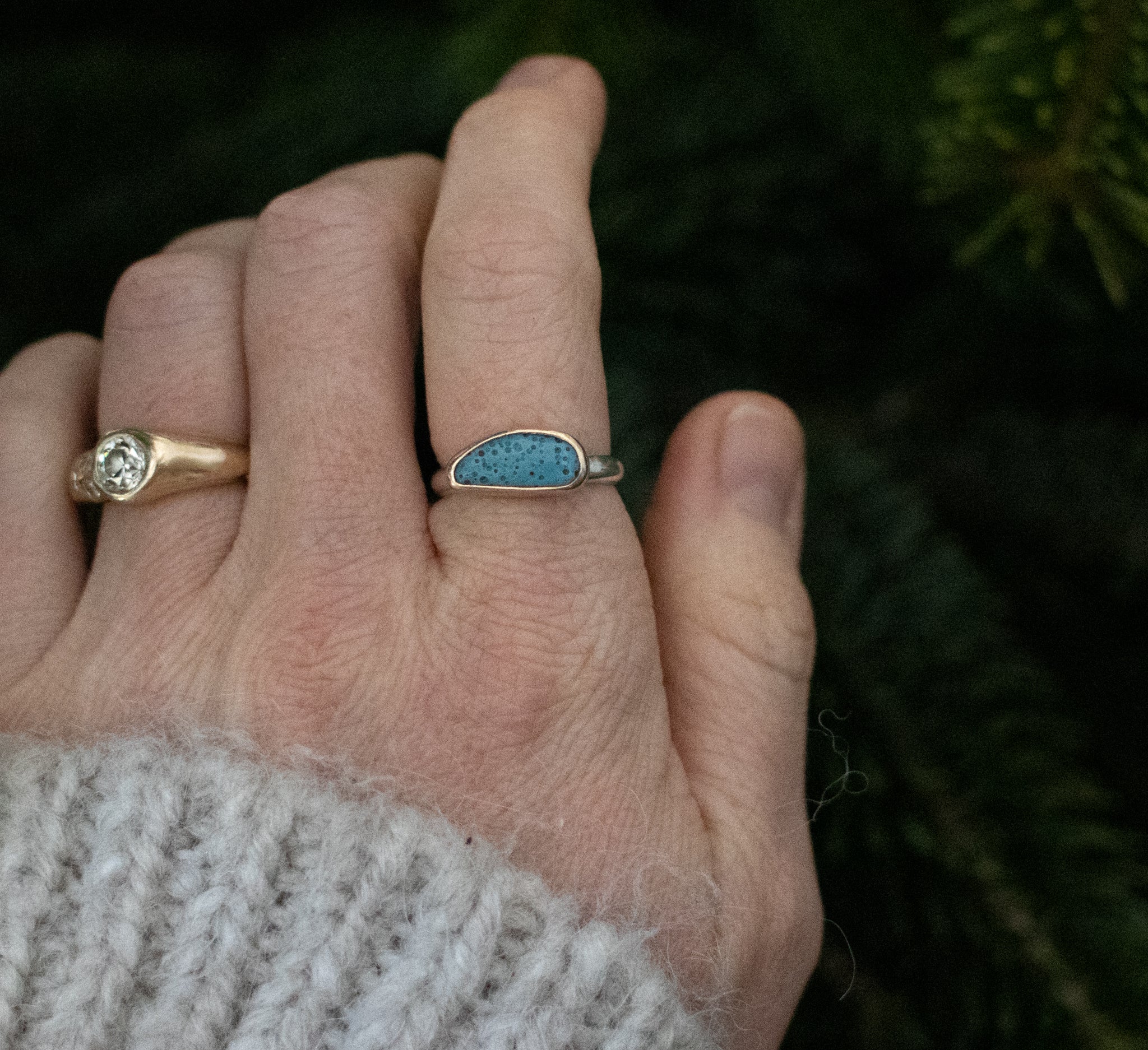 All items are handmade by me, and may have natural imperfections. This is something I personally adore, a piece with a story to tell. A stone specifically chosen for each piece, set step by step, silver hand forged. This is something I truly put my heart and soul in, and I hope it's something that you appreciate for years and years to come.