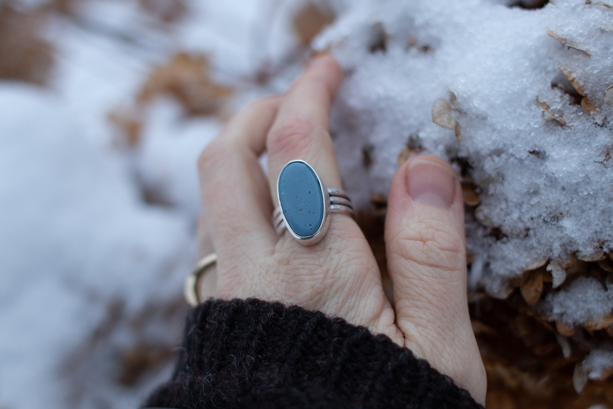 All items are handmade by me, and may have natural imperfections. This is something I personally adore, a piece with a story to tell. A stone specifically chosen for each piece, set step by step, silver hand forged. This is something I truly put my heart and soul in, and I hope it's something that you appreciate for years and years to come.