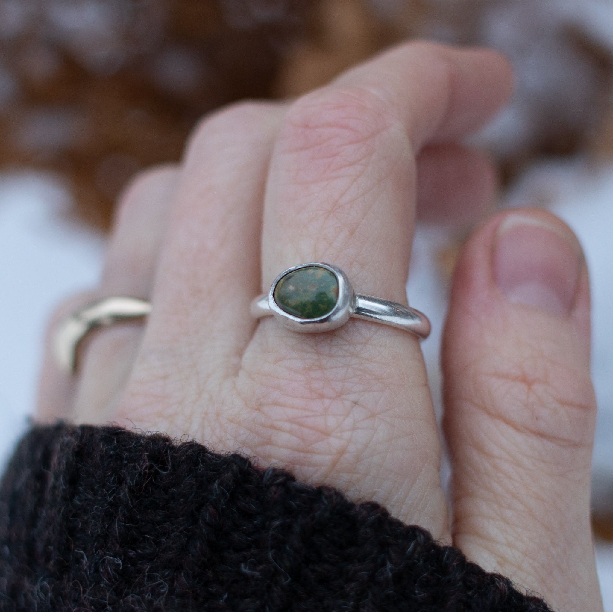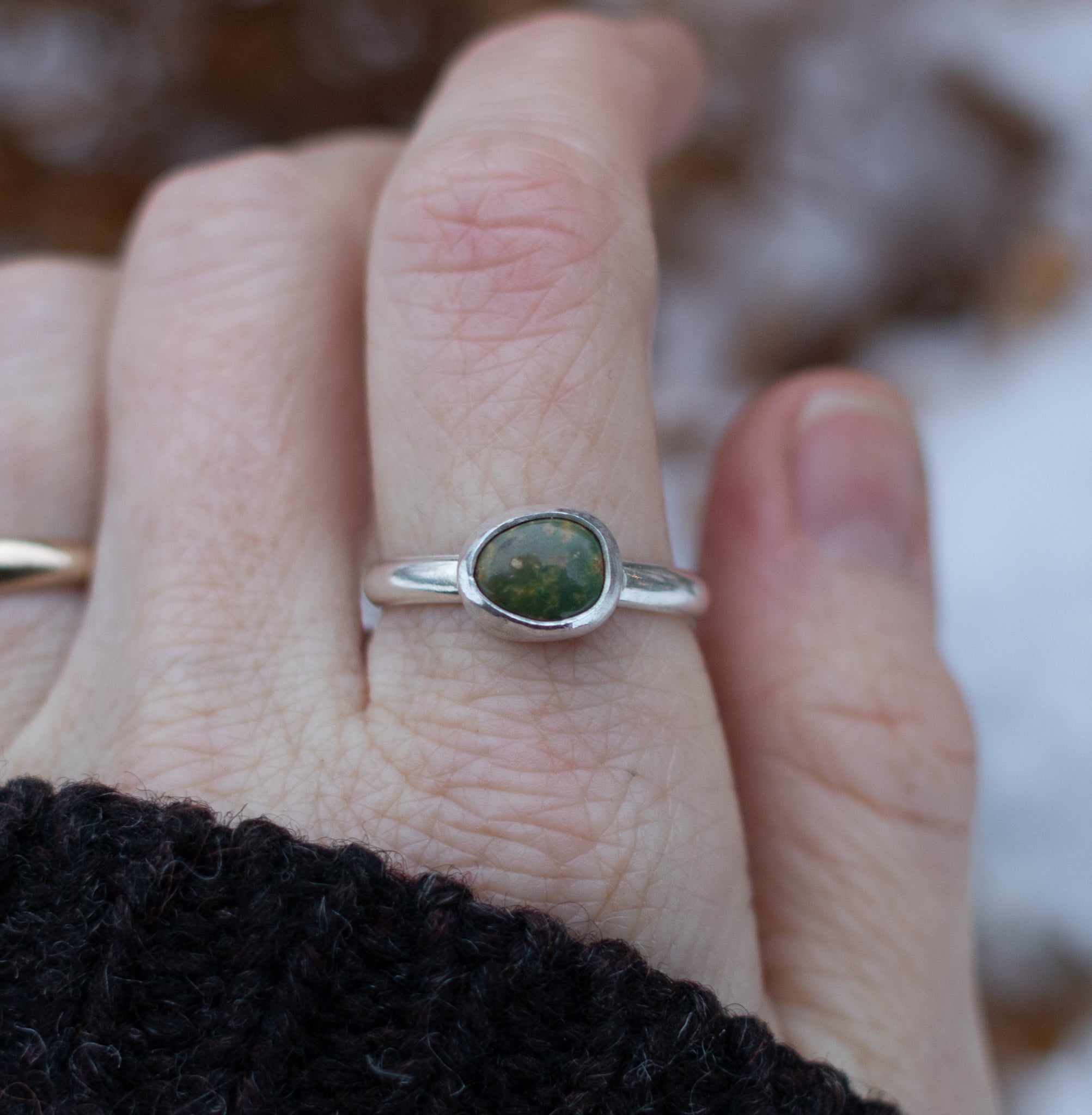All items are handmade by me, and may have natural imperfections. This is something I personally adore, a piece with a story to tell. A stone specifically chosen for each piece, set step by step, silver hand forged. This is something I truly put my heart and soul in, and I hope it's something that you appreciate for years and years to come.